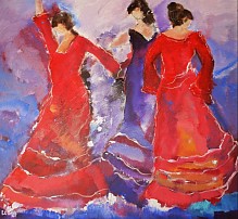Een globale impressie van het schilderij "Spaanse dans" 100x100cm.