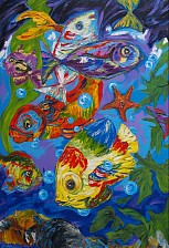 Een globale impressie van het schilderij "Fish" 70x100cm.
