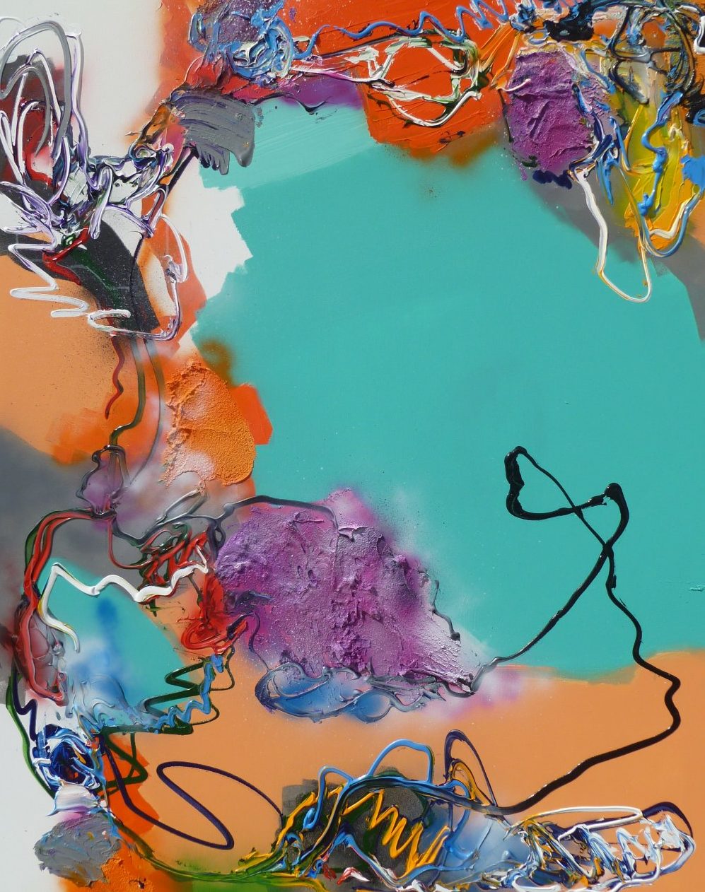 Acryl / mixed op linnen - abstract expressief werk - inclusief baklijst - kleurrijk