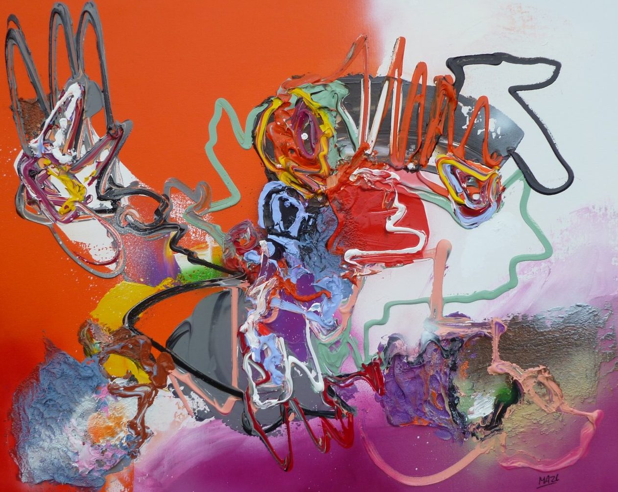 Acryl / mixed op linnen - abstract expressief werk - inclusief baklijst - kleurrijk
