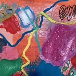 Acryl / mixed op linnen - abstract expressief werk - inclusief baklijst - kleurrijk