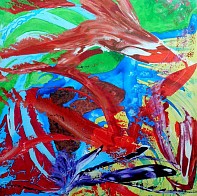 Een globale impressie van het schilderij "Etappe" 90x90cm.
