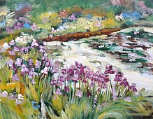 Vennen in Oisterwijk. Lelies in bloei. Impressionistisch geschilderd