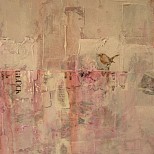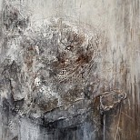 Een abstract werk, met veel textuur.