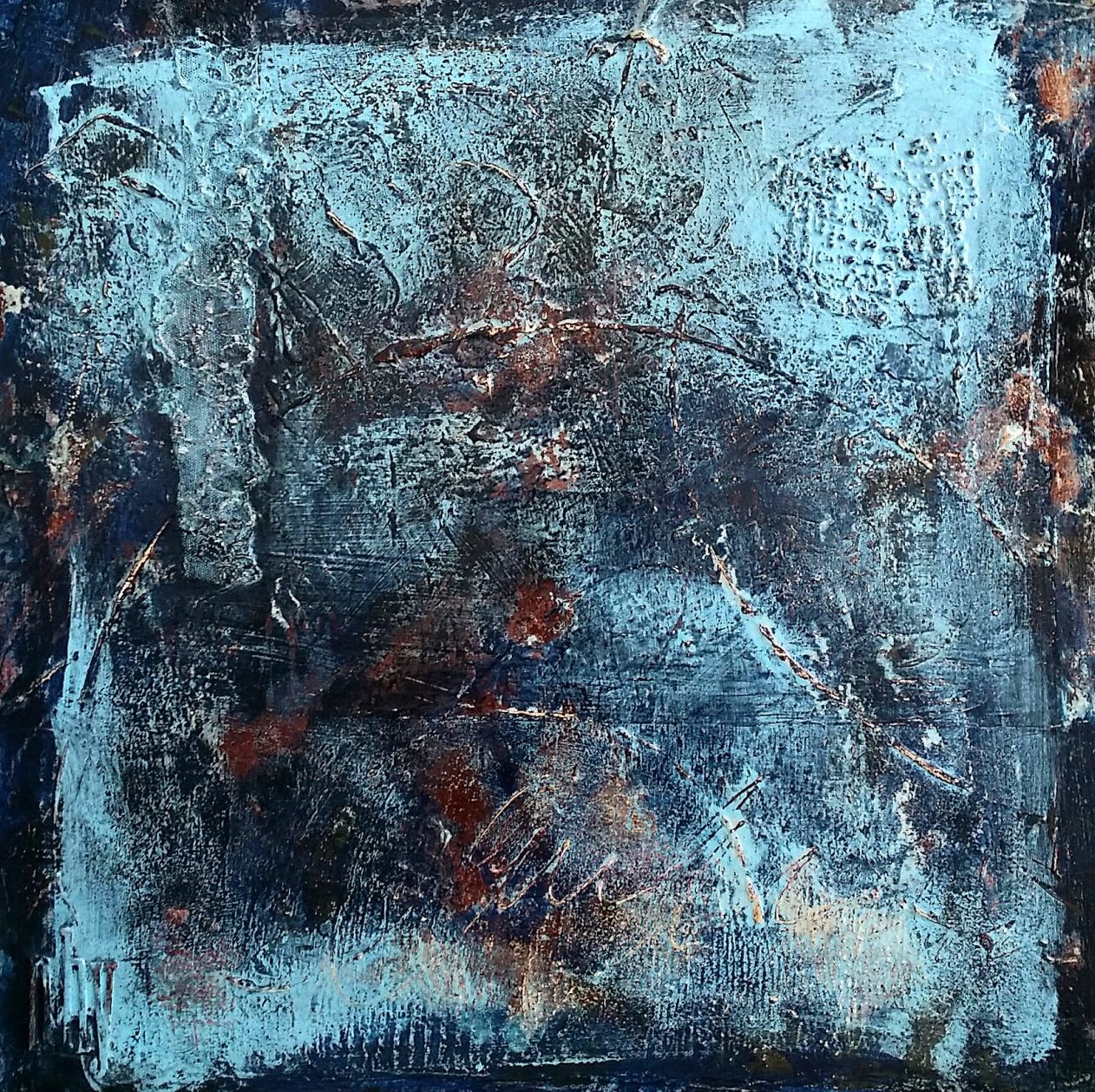 Een globale impressie van het schilderij "Blue Lagoon" 60x60cm.
