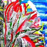 Een globale impressie van het schilderij "Zonnegloed" 203x120cm.