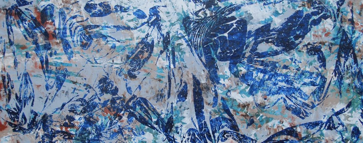 Een globale impressie van het schilderij "Deep Blue" 120x50cm.
