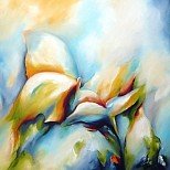 Een globale impressie van het schilderij "Passion" 100x100cm.