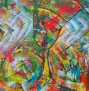 Een globale impressie van het schilderij "Hiding in the background" 80x80cm.