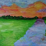 Een globale impressie van het schilderij "Abstracte tulpen" 50x50cm.