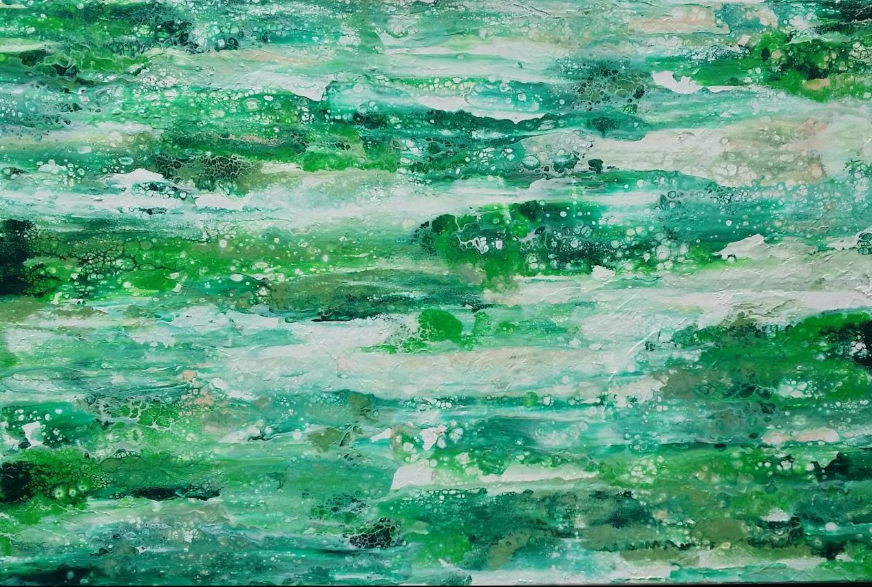 Een globale impressie van het schilderij "Traces of Leaves" 120x80cm.