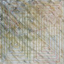 Een globale impressie van het schilderij "Oneindige lijn" 100x100cm.