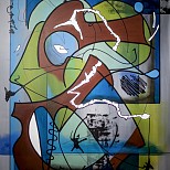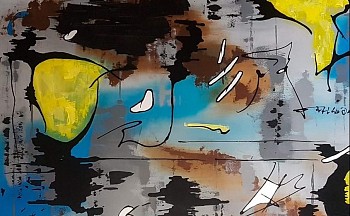 Een globale impressie van het schilderij "Evolution" 160x100cm.