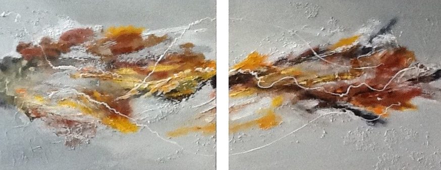 Een globale impressie van het schilderij "Twee luik" 120x50cm.