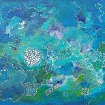 Acrylverf op linnen met herfstkleuren, geïnspireerd door een wandeling in het bos. Intuïtief / abstract schilderij. Opgebouwd uit diverse lagen verf met een dep techniek.