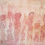 Een schilderij opgebouwd uit diverse lagen acrylverf, waarbij de kleuren in elkaar overvloeien. Daarna heb ik de lijnen gevolgd met een dot techniek, waarbij je kleine stippen maakt die vervolgens een eigen leven beginnen te leiden. Hier ontstond een onderwater beeld met allerlei (fantasie) zee dieren. Geschikt voor bijvoorbeeld een badkamer of kinderkamer.