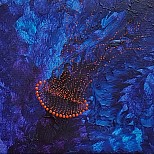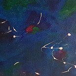 The main colours are blue and green in this "Underwater" piece. The basis consists of several layers of acrylic paint, using various techniques. Then, by following the lines and waves on canvas, the dreamy underwater landscape appeared almost by itself.