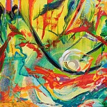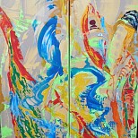 Een globale impressie van het schilderij "Blind date" 100x150cm.