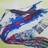 Een globale impressie van het schilderij "Gedachtenstroom" 140x100cm.