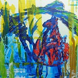 Een globale impressie van het schilderij "De wandelaar" 100x160cm.