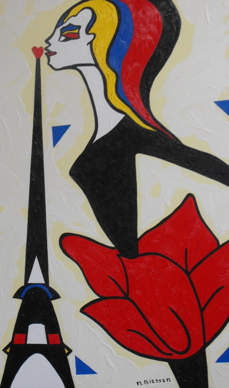 Een globale impressie van het schilderij "Daar gaat ze" 60x100cm.