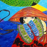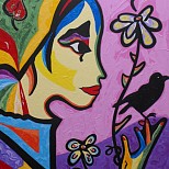 Een globale impressie van het schilderij "Beschouwend meisje" 26x32cm.