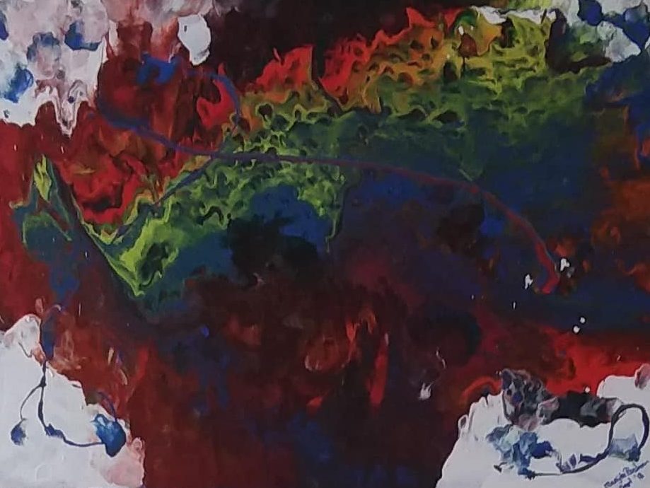 Een globale impressie van het schilderij "Save the Rainforest" 70x50cm.