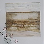 Mixedmedia acrylverf op 3d doek kan zonder lijst opghangen worden.