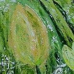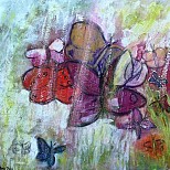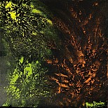 Abstract schilderij in eyecatching kleuren. Een aantal kleine schilderijtjes gaan nu weg voor kleine prijsjes.