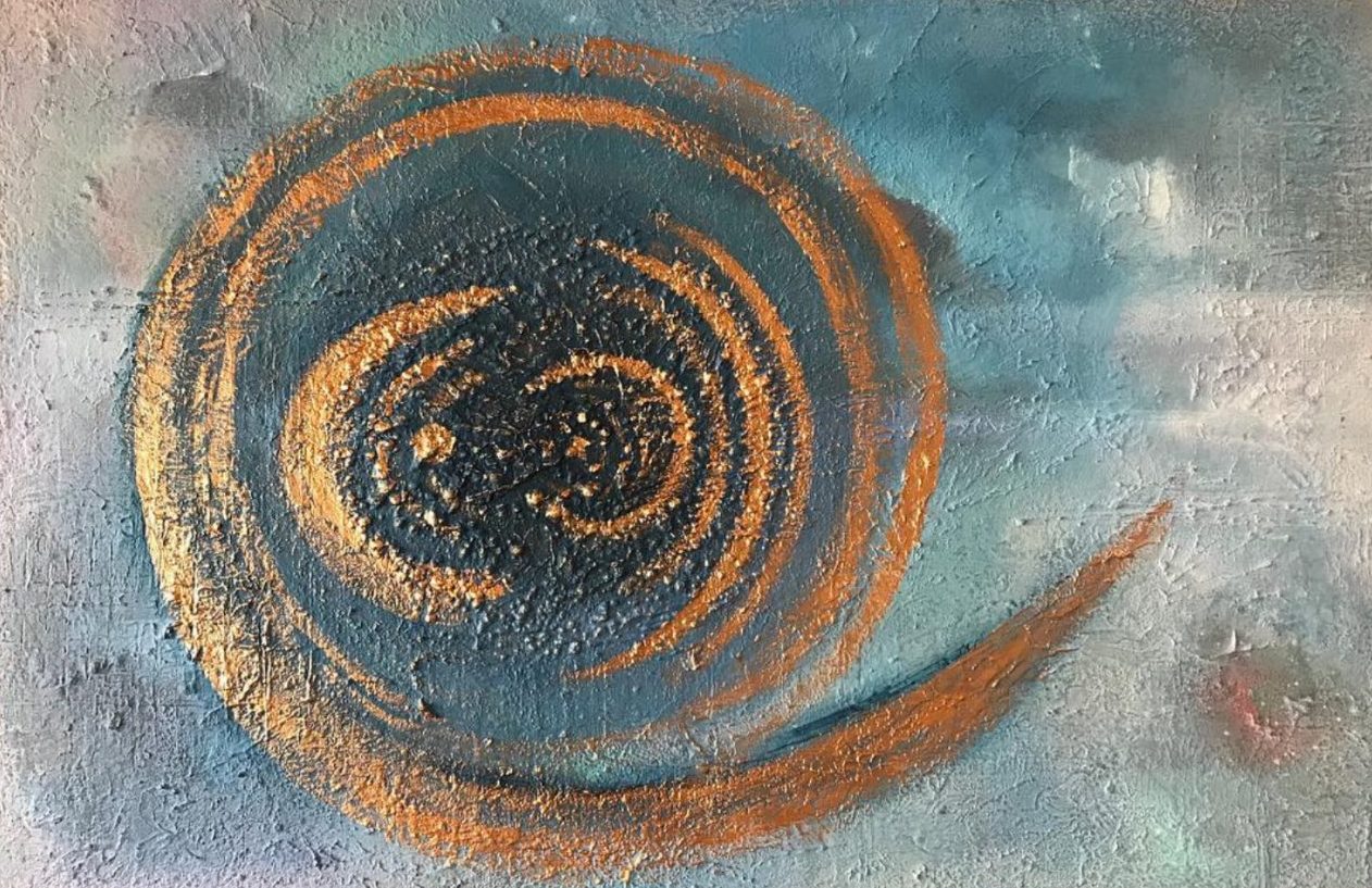 Abstract gold, acryl op linnen. De cyclus van de seizoenen: In de Winter is de hele Natuur in rust,