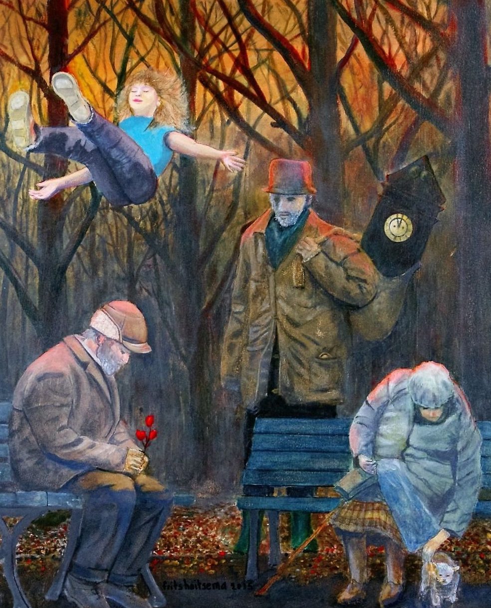Een globale impressie van het schilderij "Vadertje tijd" 50x60cm.