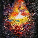 Een globale impressie van het schilderij "Avondzon aan de plas in Almere" 70x60cm.