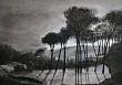 Pentekening, gewassen, Italiaans landschap, mooi ingelijst achter glas