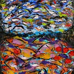 Een globale impressie van het schilderij "Vrouwenemancipatie" 50x50cm.