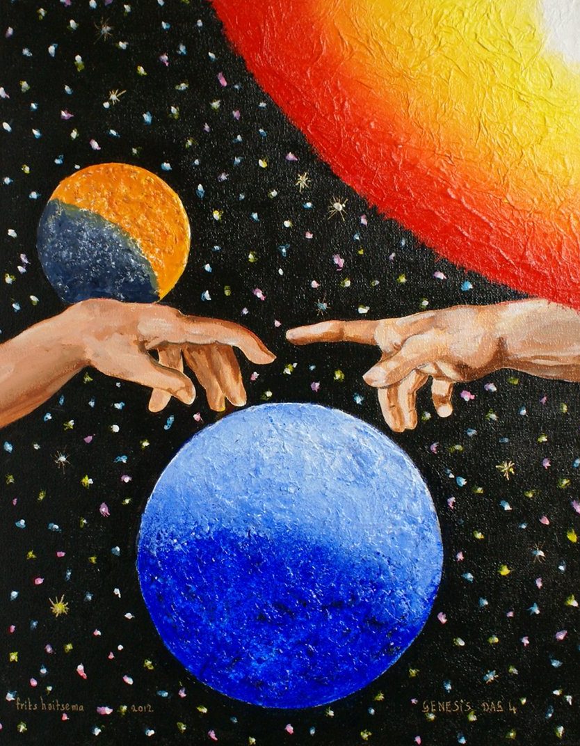 Een globale impressie van het schilderij "Genesis dag 4" 40x50cm.