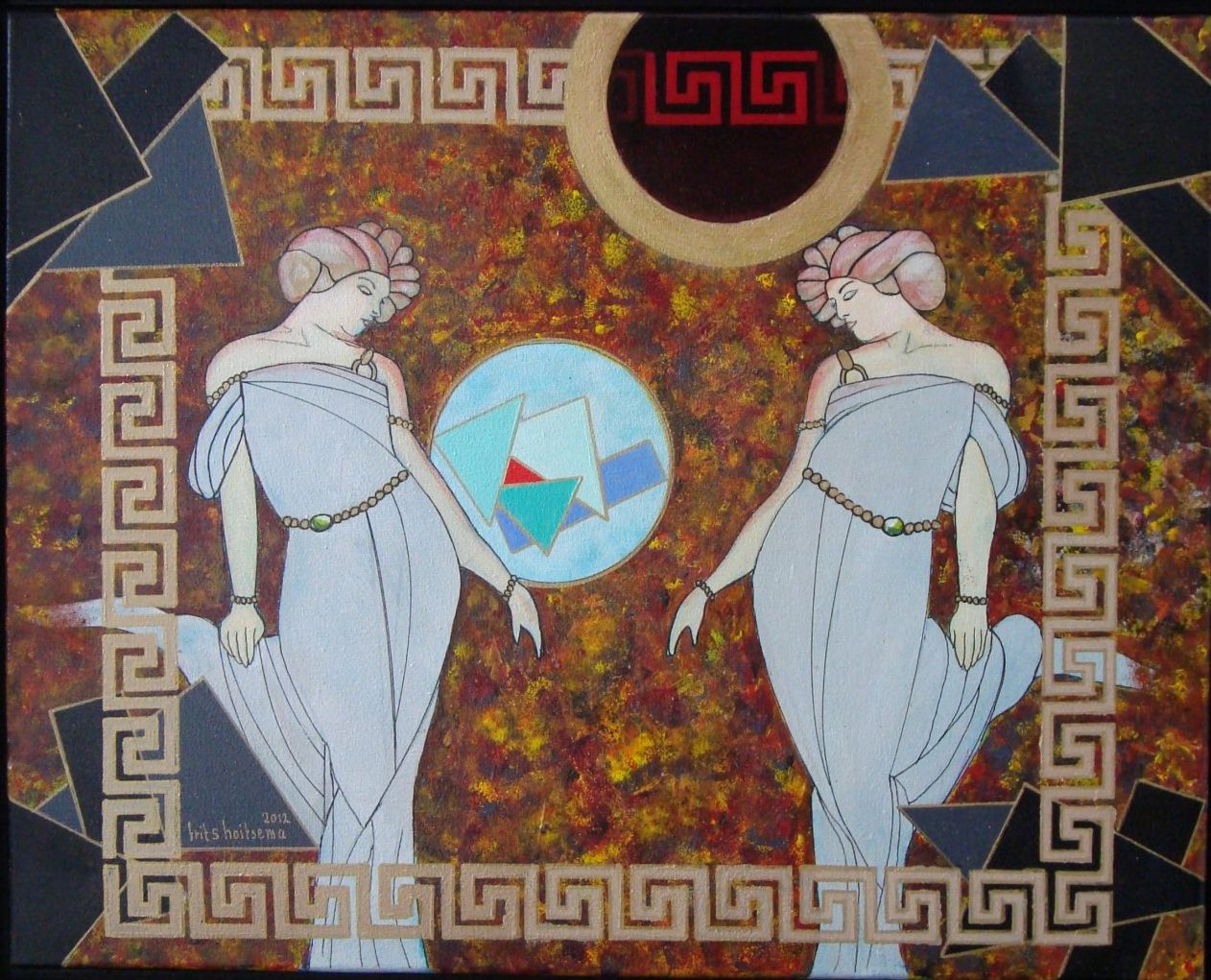 Een globale impressie van het schilderij "Muze van de kunstenaar" 50x40cm.