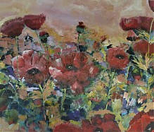 Een globale impressie van het schilderij "Klaprozen" 100x120cm.