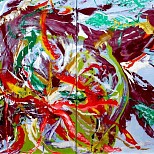 Drie luik, Acryl op katoen in een houten met lood bekleden lijst
