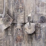 In de eerste lagen worden verschillende texturen aangebracht, met allerlei voorhanden materialen en papiersoorten.De volgende lagen worden aangebracht met Acryl-verf, in vergrijsde tinten.Effecten worden ook gemaakt met spray-paint, hiermee wordt beweging gecreëerd.