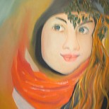 Een globale impressie van het schilderij "Denkend" 50x60cm.
