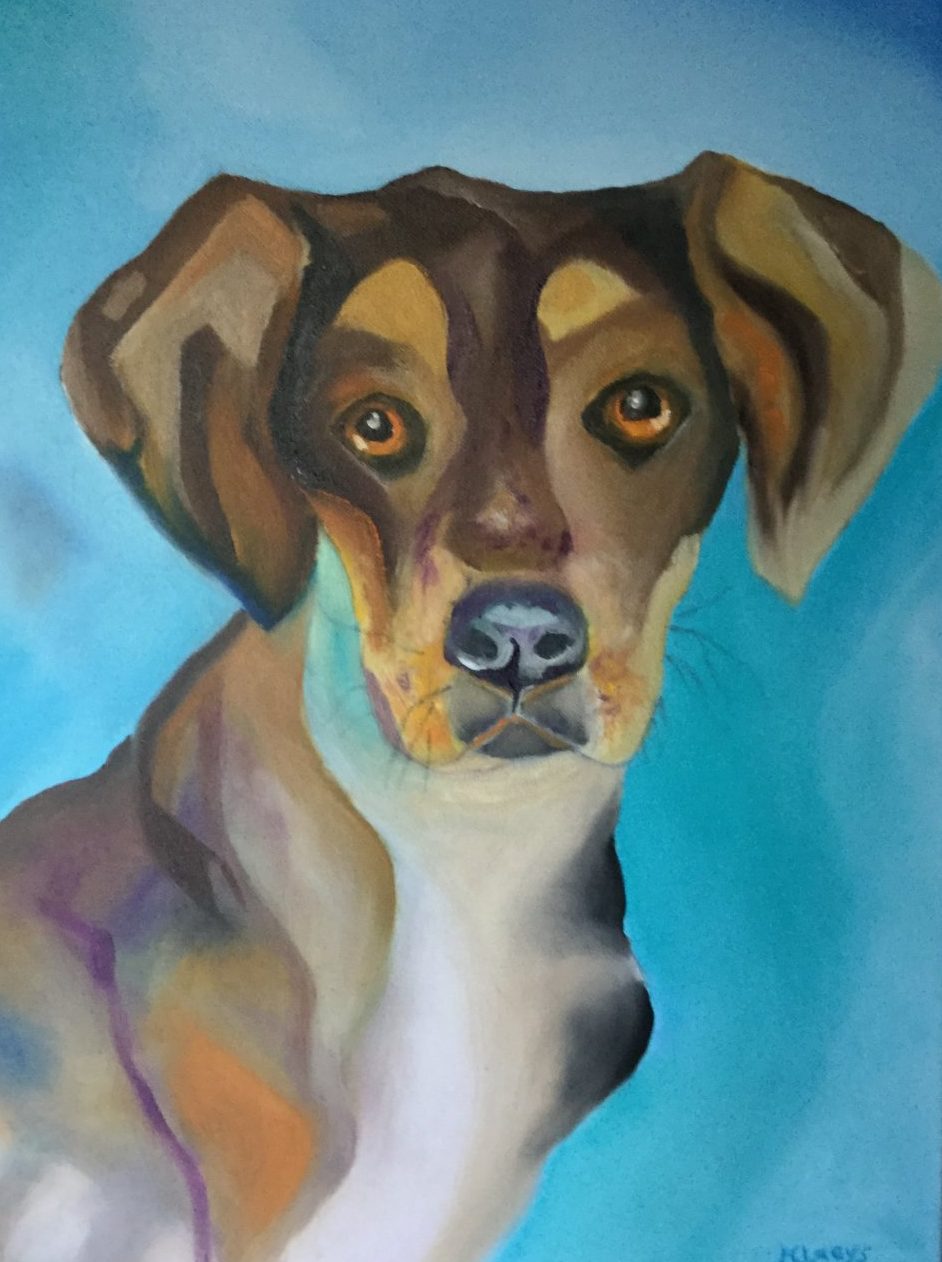 Een globale impressie van het schilderij "De trouwe hond" 40x50cm.