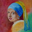 Meisje met de parel van Johannes Vermeer in mijn eigen stijl geschilderd.