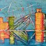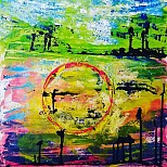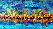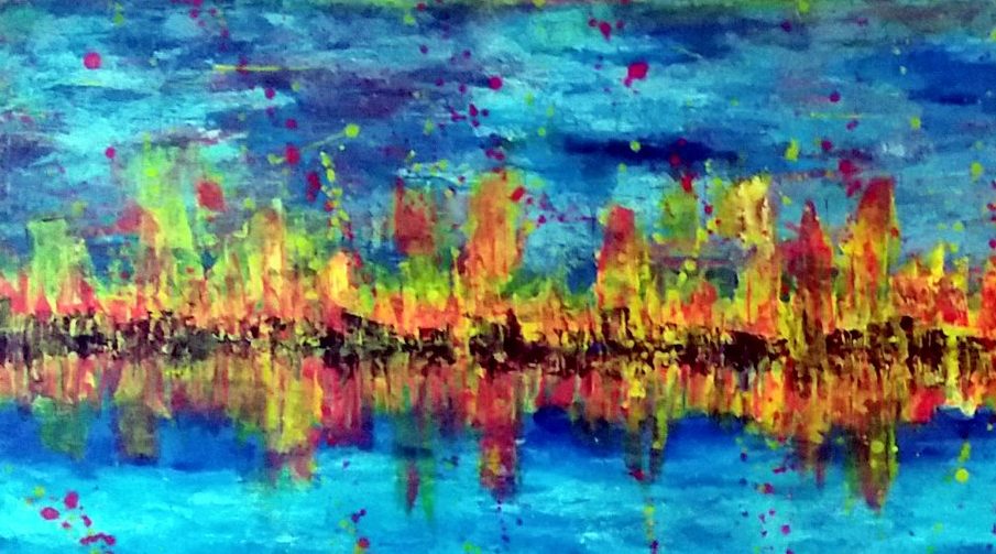 Vuurzee is een abstract acryl schilderij op Mdf