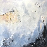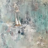 Een globale impressie van het schilderij "Secret beach" 80x80cm.