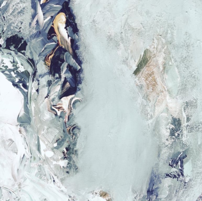 Een globale impressie van het schilderij "Blueart" 100x100cm.