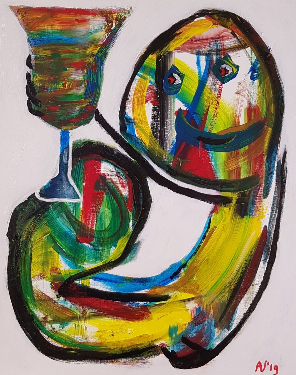 Een globale impressie van het schilderij "Boompje, glaasje, Appeltje?" 40x50cm.