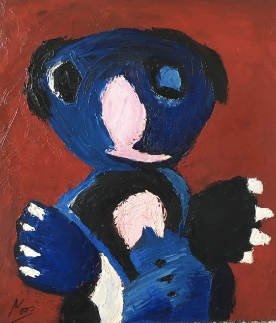 Olieverf schilderij in de stijl van de Cobra beweging jaren 50 van o.a : Karel Appel, Constant, Corneille en Lucebert.
