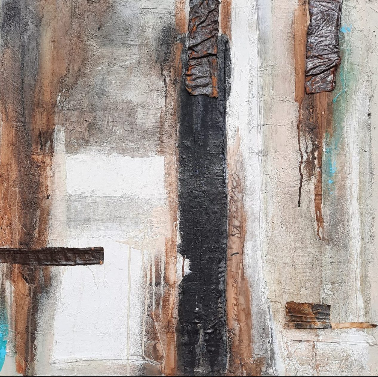 Oude muren hoe mooi zijn die? Roestvorming , oxidatie hoe prachtig van kleur? Ik heb dit verwerkt in dit mixedmedia materie schilderij.