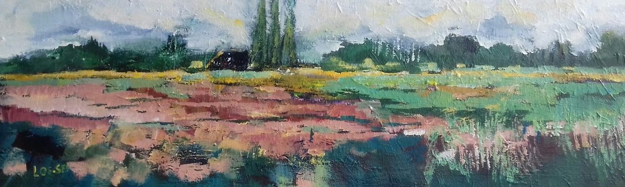 Een globale impressie van het schilderij "Vergezicht bij Nuenen" 120x40cm.