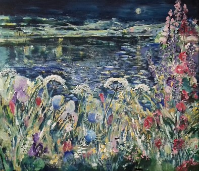 Een globale impressie van het schilderij "Tuin in de avond" 180x160cm.